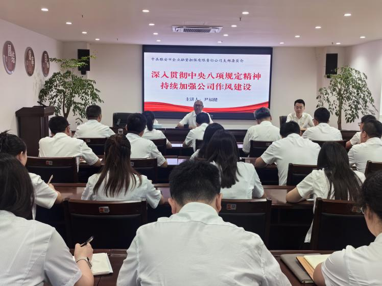 二是黨支部書記講專題黨課。市擔(dān)保公司黨支部書記、董事長(zhǎng)尹福健以“深入貫徹中央八項(xiàng)規(guī)定精神,持續(xù)加強(qiáng)公司作風(fēng)建設(shè)”為題,為全體黨員、入黨積極分子講授了一堂生動(dòng)的專題黨課。黨課圍繞充分認(rèn)識(shí)開展學(xué)習(xí)教育的重大意義、深刻把握中央八項(xiàng)規(guī)定精神的豐富內(nèi)涵和實(shí)踐要求、充分認(rèn)識(shí)違反中央八項(xiàng)規(guī)定精神的嚴(yán)重性和危害性以及準(zhǔn)確把握黨的作風(fēng)建設(shè)的重點(diǎn)任務(wù),自覺強(qiáng)黨性正作風(fēng)守紀(jì)律等4個(gè)方面展開,為進(jìn)一步加強(qiáng)作風(fēng)建設(shè)指明了方向、提供了遵循。